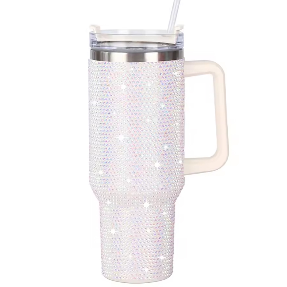 Leve muito mais brilho para sua rotina com essa linda garrafa térmica em aço inox cravejada com strass! Compacta, funcional e super estilosa, ela é perfeita para quem ama elegância em cada detalhe. Brilhe em cada detalhe. Hidrate-se com elegância.