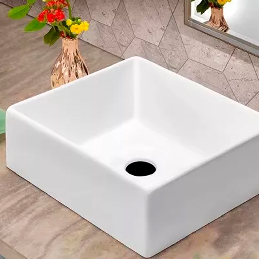 Nome: Cuba De Cerâmica Quadrada Apoio Quadrada 38x38x13,5cm